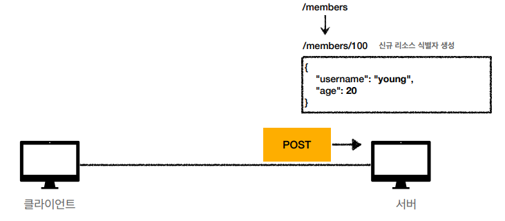- 스펙: POST 메서드는 대상 리소스가 리소스의 고유한 의미 체계에 따라 요청에 포함 된 표현을 처리하도록 요청