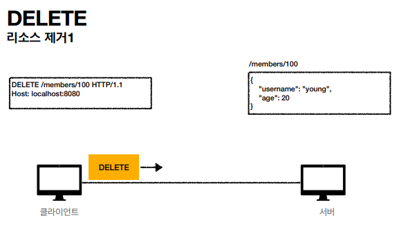 - 서버는 /members/100에 있는 리소스를 삭제한다.