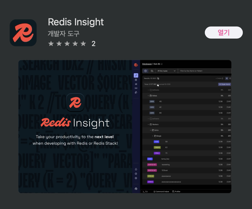 1️⃣ app store에서 Redis Insight 설치