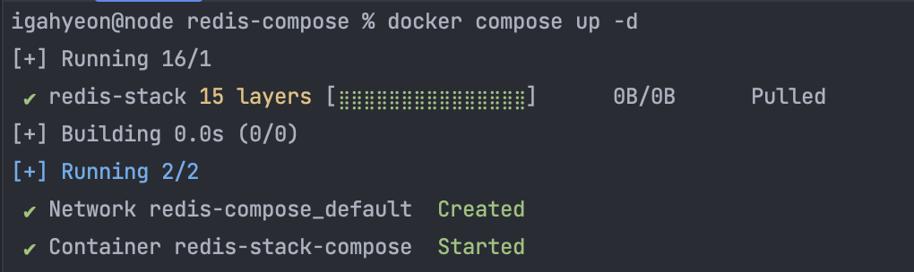 2️⃣ 다음 명령으로 Redis 컨테이너가 정상적으로 실행되었는지 확인한다.