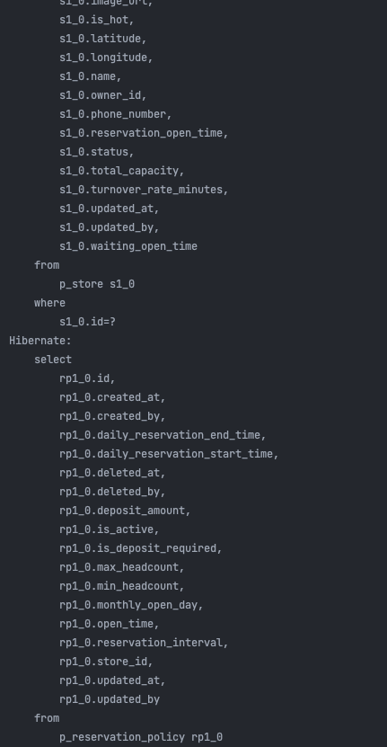 fetch.LAZY 를 해줬는데도, store에 수정이 일어나면 그 하위 자식인 reservationPolicy도 조회된다. (hibernate select)